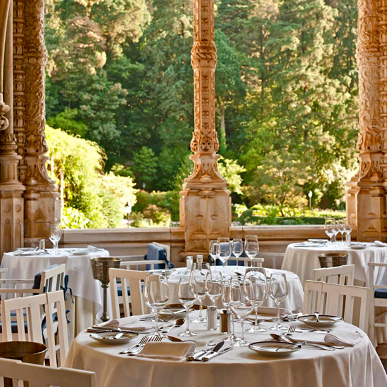 A majestosa sala de jantar do Palácio, outrora cenário de importantes banquetes reais, é hoje em dia um dos melhores e mais refinados restaurantes de Portugal, quer quanto ao serviço, quer especialmente quanto à cozinha portuguesa reinventada que propõe e quanto à sua garrafeira própria, constituída pelos exclusivos vinhos do Bussaco, de renome mundial, mis-en-bouteille-au-château desde 1920.